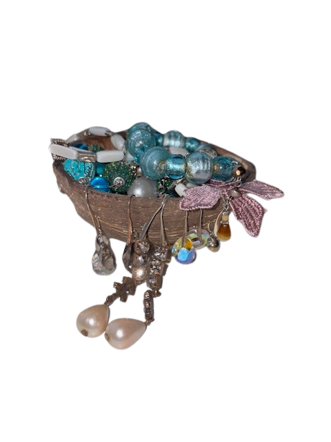 Sustainability is an important part of how Angie works. Many pieces are created using recycled gems, beads, jewels, and recycled material. This gives these elements a new life, while reducing the need for newly sourced gems and jewels.